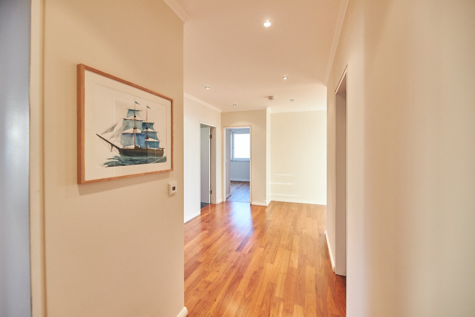Die Wohnung verfügt über zwei gut geschnittene Schlafzimmer sowie ein separates Ankleidezimmer, das zusätzlichen Stauraum oder Verwendungsmöglichkeit z.B. als kleines Büro bietet. Das moderne Masterbad ist mit einer ebenerdigen Dusche ausgestattet, ergänzt durch ein separates Gäste-WC.